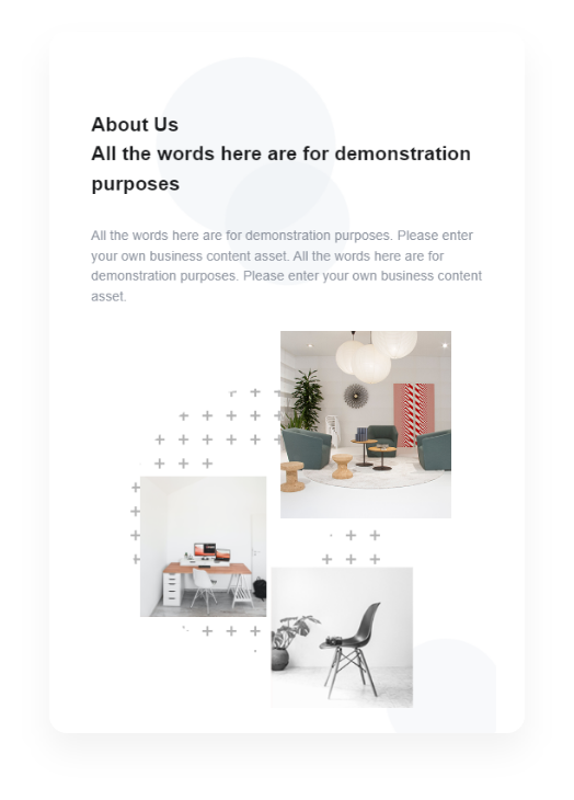 - 擁有設計師獨家設計的模板,網站建設只需將模塊拖到編輯器中,編輯內容,保存并發(fā)布您的網站!簡單高效,精致美觀。